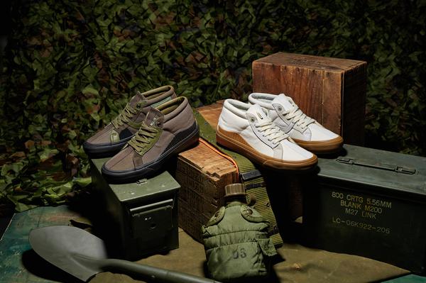Na mais recente coleção em conjunto, Vault by Vans apresenta novas versões do TH 138 Mid LX, Authentic One Piece LX e Derby V Lug LX em designs elevados por Taka Hayashi. Cada par traz a assinatura de Taka na palmilha e um posicionamento do logo da Vans de forma bem inesperada. Os destaques dessa linha são as versões TH 138 Mid LX em uma paleta de cor militar e em uma composição que mistura suede, canvas e couro, em conjunto com Authentic One Piece LX explorando cores inspiradas no pôr-do-sol californiano.