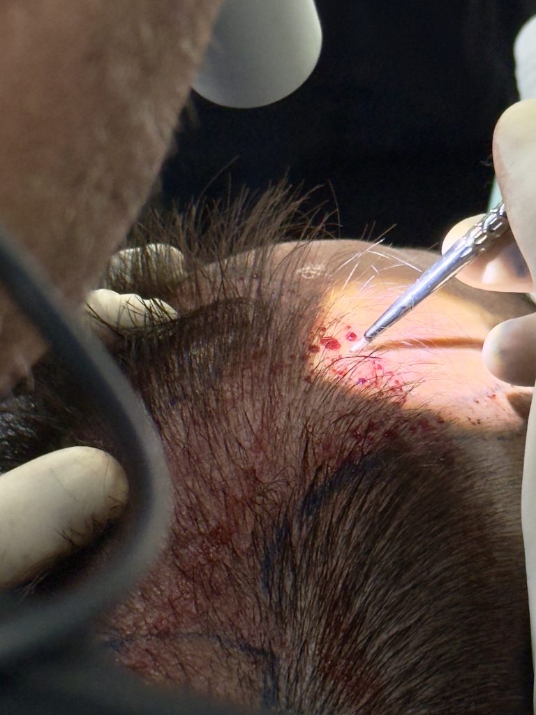 Baseado no método Follicular Unit Extraction (FUE), o procedimento consiste na retirada individual das unidades foliculares da área doadora, que são implantadas cuidadosamente nas regiões com rarefação capilar. Por não utilizar incisões lineares, a técnica evita cicatrizes visíveis e favorece um resultado natural e harmonioso.